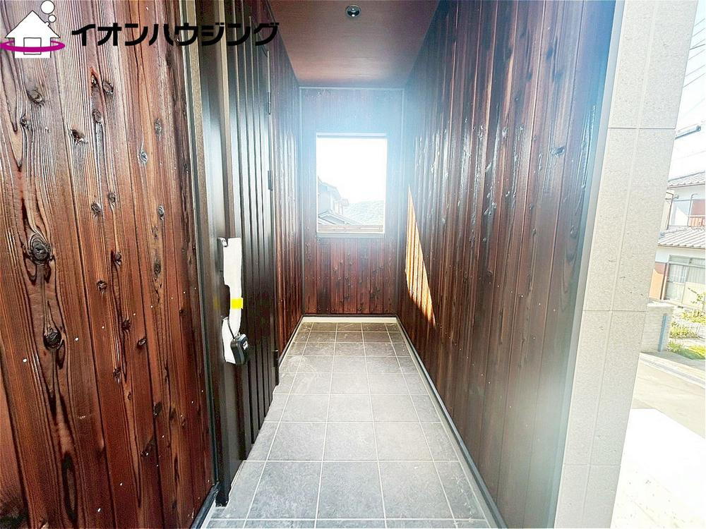 玄関に続くアプローチはおしゃれなヒノキ造りとなっております。ヒノキのいい匂いがしますよ♪