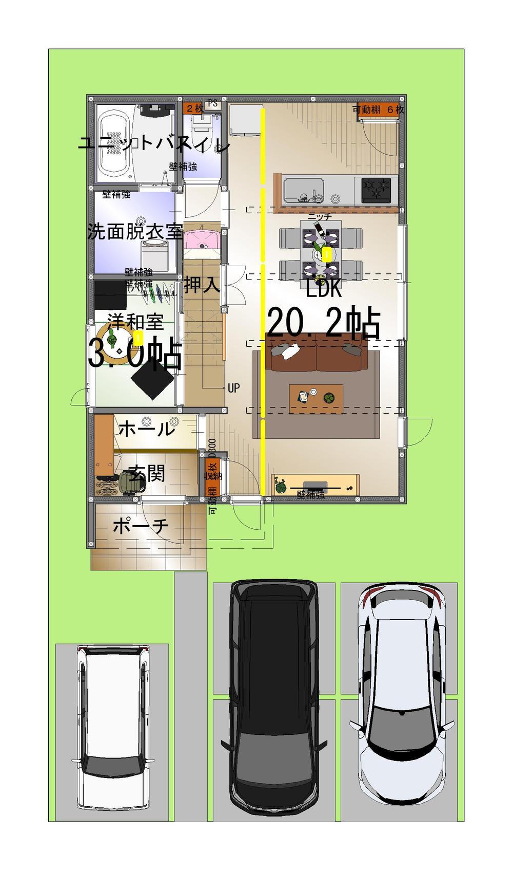 駐車場3台分以上・整形地・浴室1坪以上