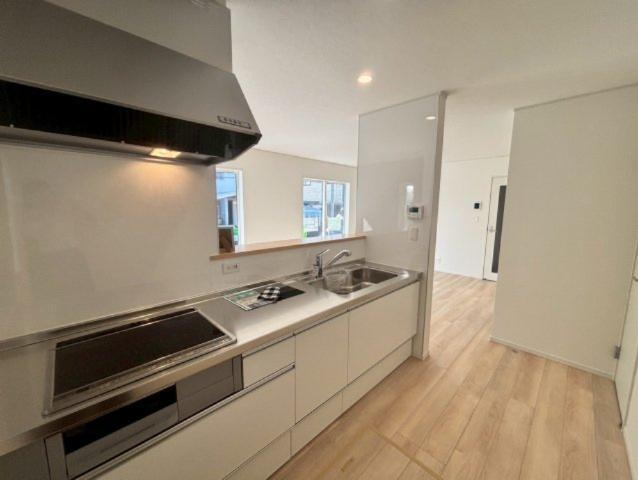 快適な室内と落ち着いた外観が魅力の2025年10月築の物件。建物面積100.44平米の物件です。ニーズのあるピカピカの新築物件です。玄関ポーチがあるため、雨に濡れにくい状態で傘を開けます。使い勝手が良いシステムキッチンがある物件です。お掃除がしやすいIH調理器です。コチラの物件は、新築の戸建て物件で設備も充実しています(*^^*)