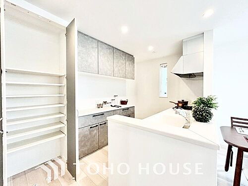 忙しい共働き世帯など、食品の買い置きや日用品のストックに大変便利なパントリー収納が備わってます。