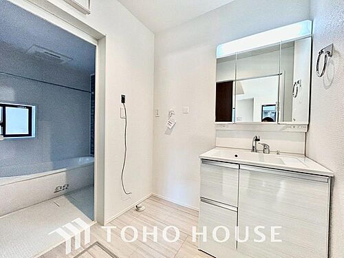 お家の中でも特にプライベートスペースとなる洗面所は、洗濯場所と浴室を同じ空間でまとめております。