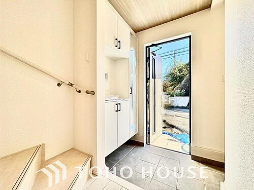 土足のまま入れるの玄関収納。ゴルフバックや部活&スポーツ用品、日常使いの傘なども収納できて便利です。
