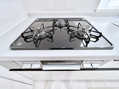 ガスコンロはSiセンサー搭載。火力調節や焦げ付き・消し忘れも防いでくれます。