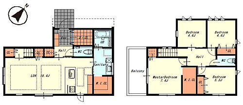 間取り4LDK(LDK 18.4 洋 7.4・5.3・4.6×2)