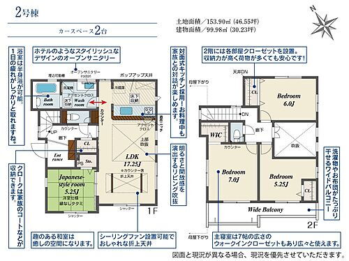 駐車場2台分・設計住宅性能評価取得・建設住宅性能評価取得