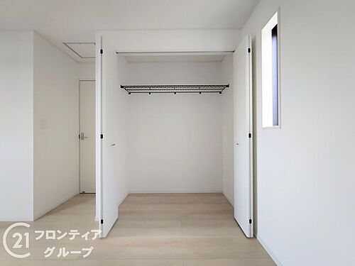 木目の美しさを際立たせるシンプルデザインのワイドクローゼットはたっぷり収納ができます!