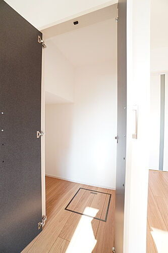 靴だけでなく、アウトドア用品やベビーカーなども置けるシューズクローク。※類似物件の参考画像です。