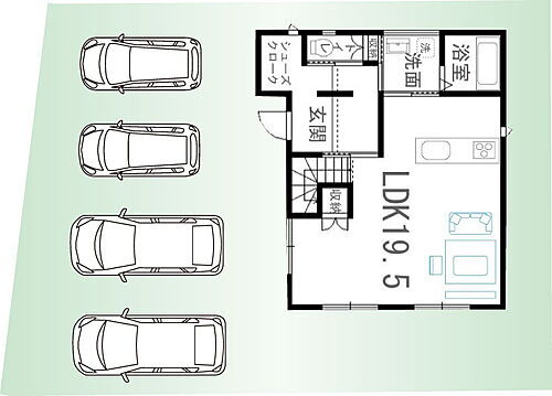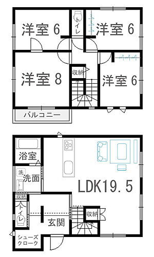 19.5帖の広々リビングと6帖以上の洋室が4部屋ある間取りです!