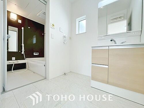 お家の中でも特にプライベートスペースとなる洗面所は、洗濯場所と浴室を同じ空間でまとめております。