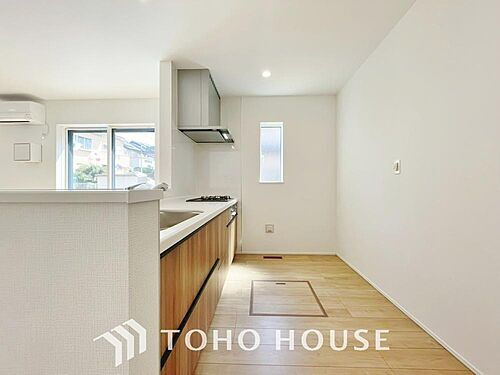 夫婦そろってキッチンに立っても調理がしやすく余裕の広さ。家事をしながら会話も弾みます。