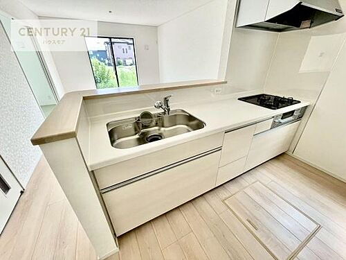 大人気の対面式システムキッチンを採用しています!ご家族のコミュニケーションが自然と増える設計です。お子様にも目が届くので嬉しいですね。収納力もあります!
