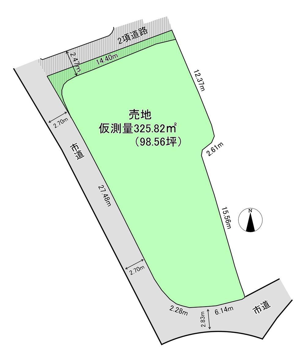 | 接道状況 | 南2.8m接面6.1m 西2.7m接面29.7m 北2.4m接面14.3m 二方道路 |