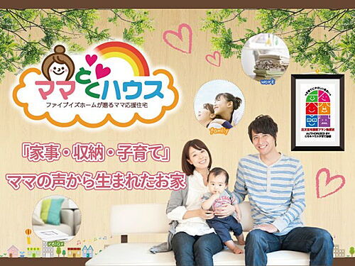 当社規格住宅 ママとくハウス◆ママを応援するコンセプトハウス。ママが楽しく笑顔でいられるため、女性のアイデアをたくさん取り入れた家。それがファイブイズホームの誇る「ママとくハウス」です!