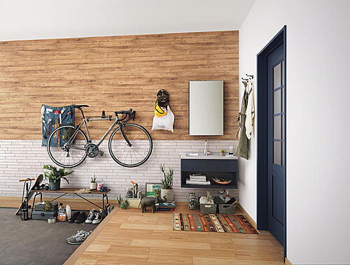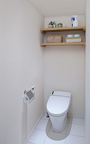 施工例 お掃除もラクラクな節水型タンクレストイレ。快適な温水洗浄暖房便座付。