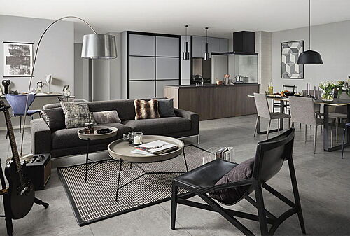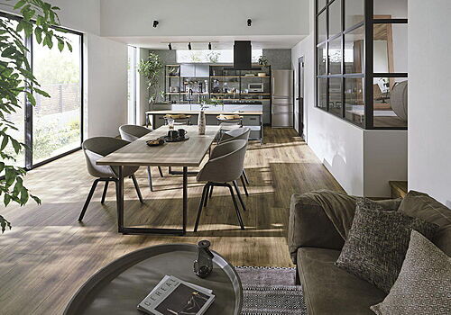 施工例 対面式カウンターキッチンでお料理しながらリビングの様子を見渡せます。