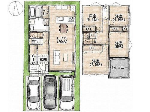 ※建築条件土地の情報内に掲載されている、建物プラン例は、土地購入者の設計プランの参考の一例であって、プランの採用可否は任意です。