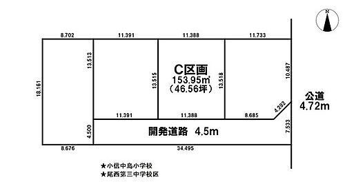 東側公道 幅員4.72m南側開発道路 幅員4.5m