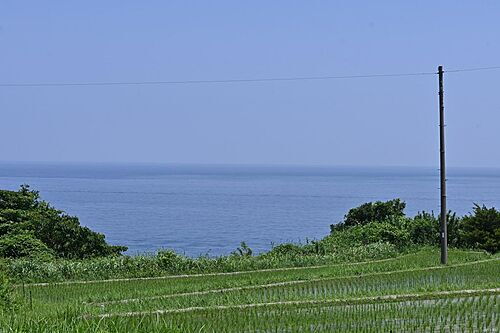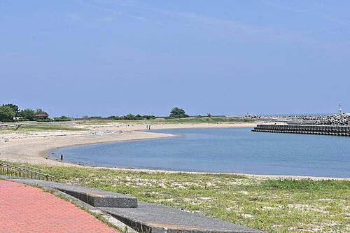 視界が開け、海が見下ろせる土地です。海の景色を日常に取り入れたい方におすすめです。周辺は落ち着いた住環境。インターやスーパーにも近く利便性も◎