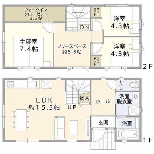 建物本体価格/1、980万円(税込) 建物面積/89.42平米3000棟の実績の中から人気のプランを採用しています!※掲載の建物プランは参考としての一例です。