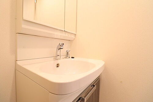 【独立洗面台】三面鏡裏収納や、下部にも収納スペースありで洗面台を綺麗に保てます☆※空室時の写真です